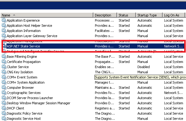 If you having this problem in IIS 7.x; you can fix this issue with enabling “ASP.NET State Service” from the services. To do so; Follow the bellow steps: